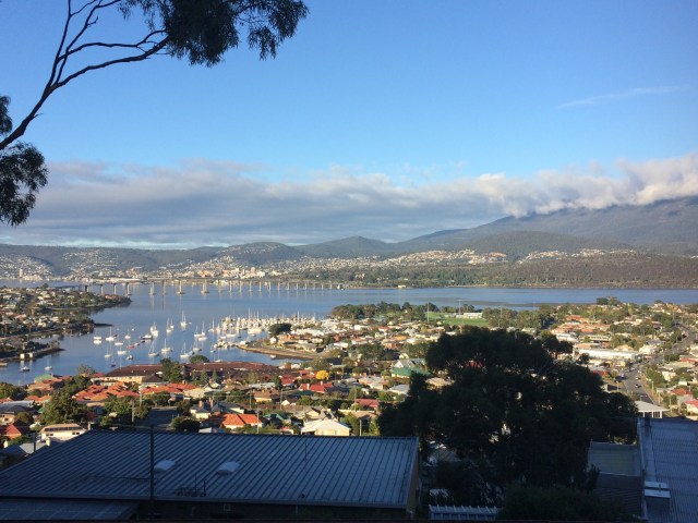 I have been enjoying my time in Hobart, Tasmania with my boyfriend and family. We surprised his mom last night by flying down to see them. This morning my boyfriend and I went out for a walk in the crisp cold morning air. I got so see a beautiful view of the city.