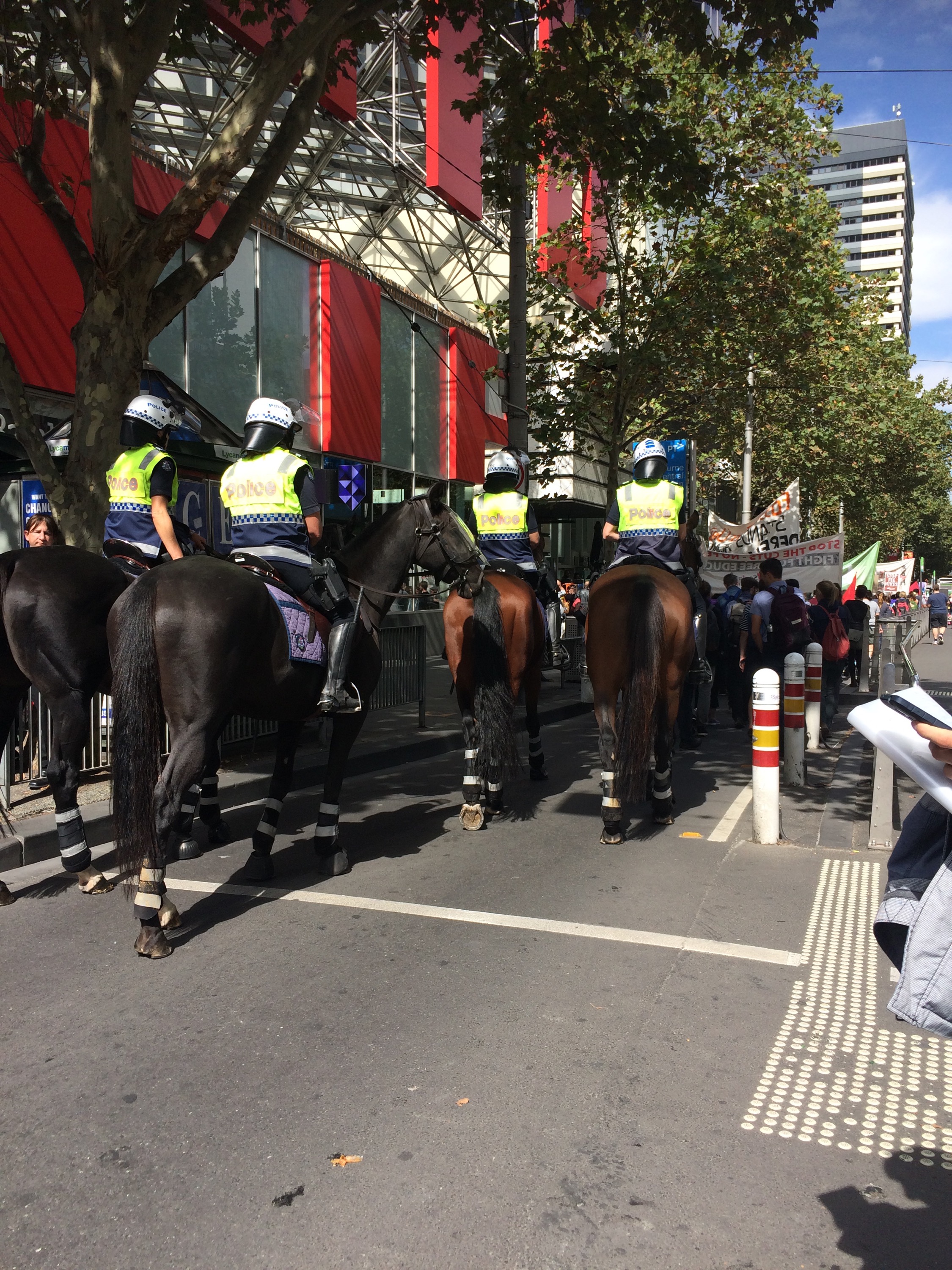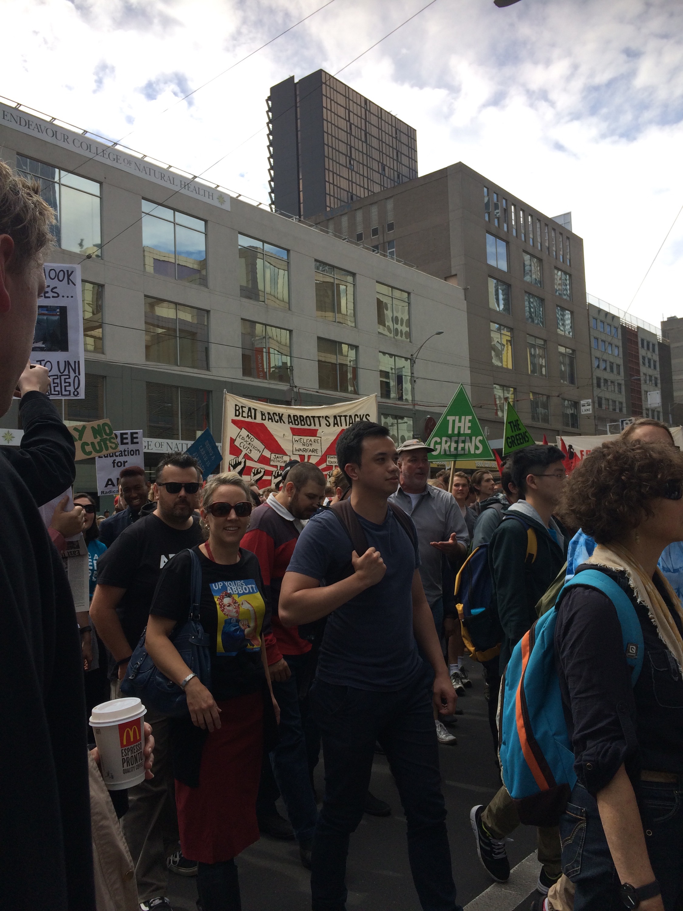 I headed into the CBD today on my day off, it is also day I head into the city for school. On my way there I saw a peaceful protest of students wanting no more cut backs. I took some pictures, as soon as I saw it I wanted to start interviewing students, I guess that journalist in me hasn’t left yet. Anyhow!.. I went into H&M to check out some beanies for my trip to Tasmania. I am still amazed on how busy that store is every single time I go in and it’s so massive, yet I still love going there.