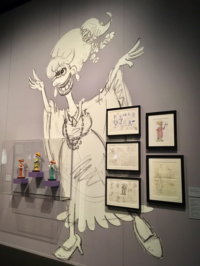 Each movie or short film they made had a very detailed section, from tools they used, props, drawing ideas, heaps of sketches, videos, music, sound and even some of the models themselves. The place was interactive, it had a few peep holes where they would play a few short movie clips. I really enjoyed the large wall painting and stencils that would represent the theme of that wall.